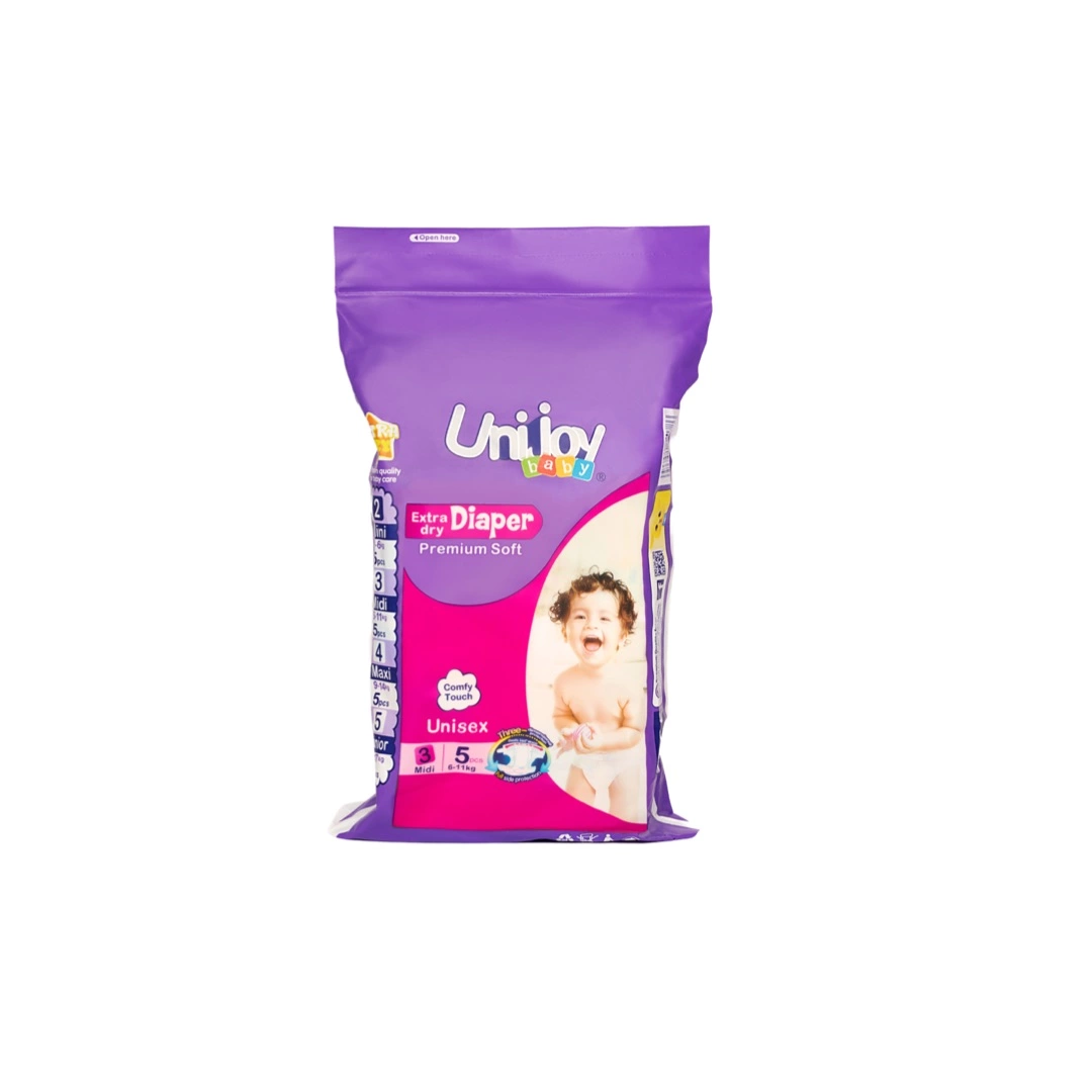 Ультратонкие подгузники UNIJOY, размер M (6-9кг), в упаковке 5 шт.